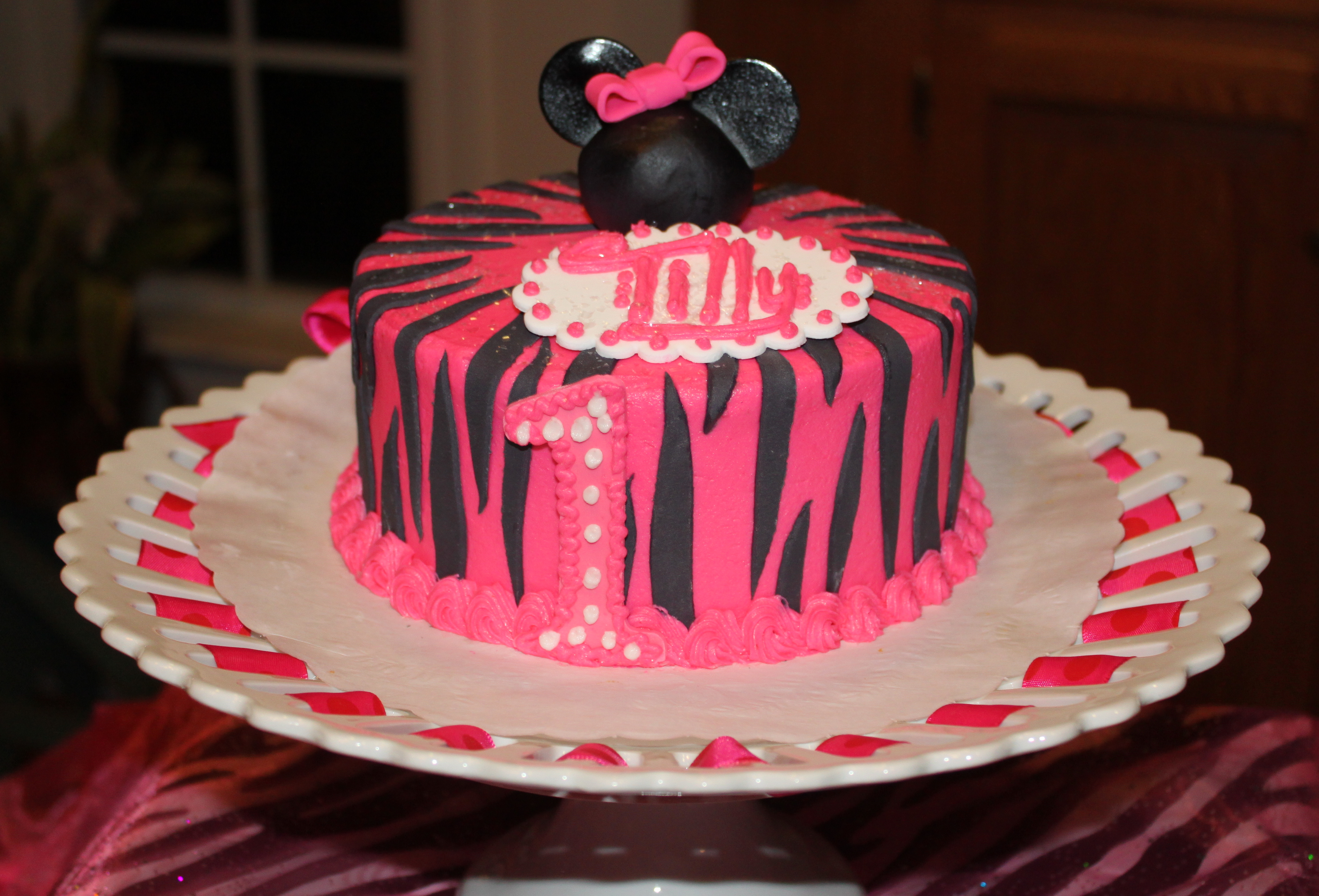 I can’t belive my sweet baby girl turned one! My goodness, this first year just flew by so quick and before I knew it I was planning a 1st birthday party. There was no doubt that the party would be Minnie Mouse, Tilly loves watching Mickey’s Clubhouse and loves to dance to the Hot Dog Song! So Minnie Mouse it was…Hot pink, polka dots, zebra print & cupcake Minnie Mouse! <squeal> Yay!