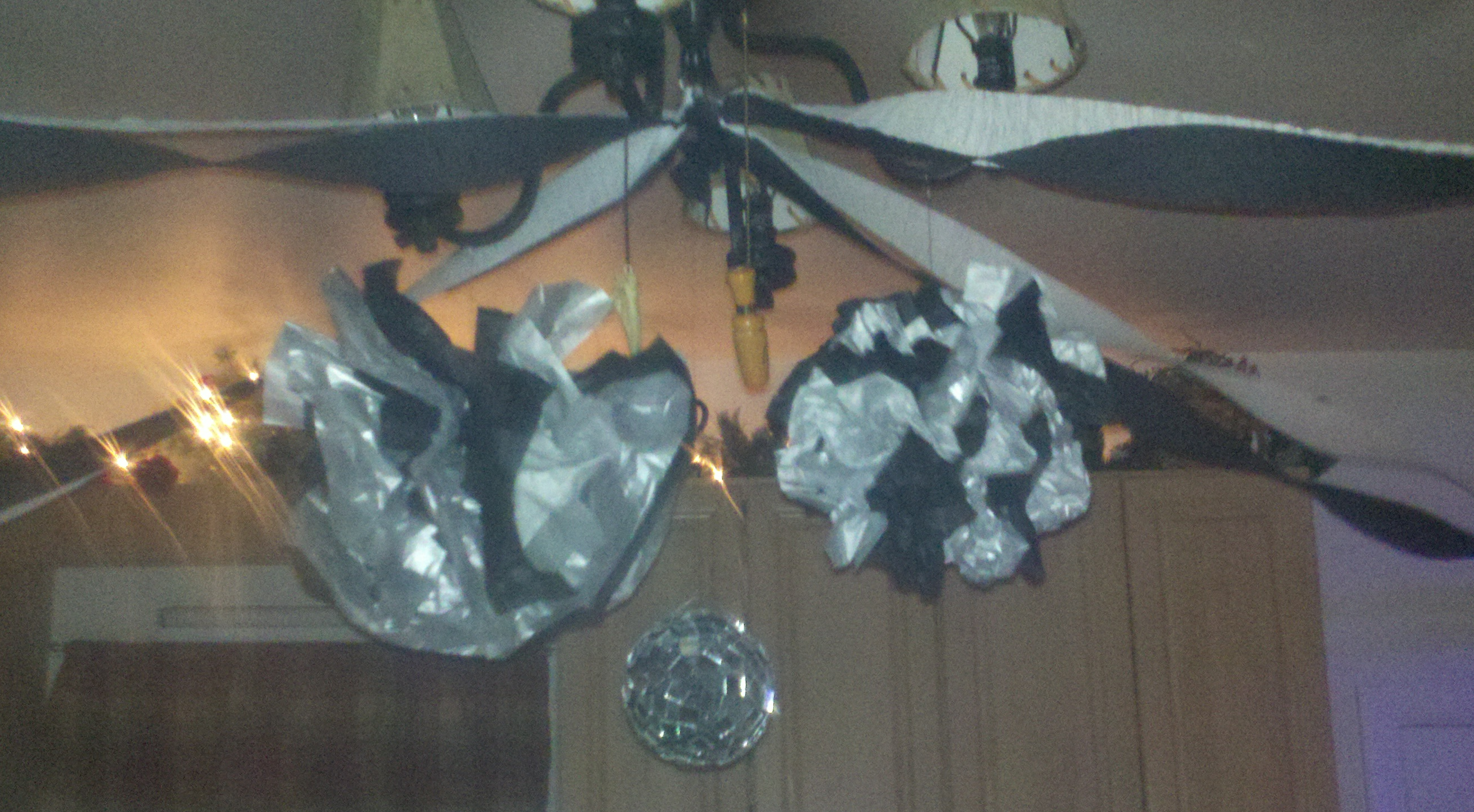 Black and white streamers were hung all throughout the house as well as black and silver tissue paper poms.