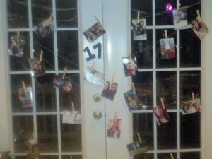 Taylor had also given me some pictures to use of her, I was running out of room so I used some ribbon and crisscrossed it all over the kitchen doors, then I hung the pictures up with clothespins for display. All her friends liked looking at the pictures and finding themselves.