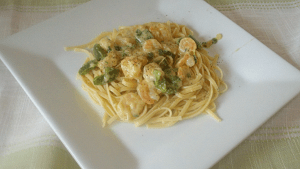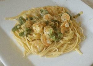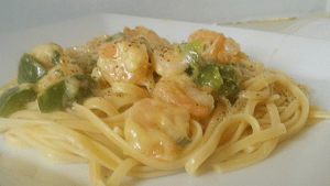 You can always get creative and try the base with different variations. You could add broccoli, asparagus, and peppers or substitute chicken or scallops for the shrimp. Or just change up the pasta and use penne, bowtie or egg noodles. Pretty much anything you could do a stir-fry with, could be substituted with this dish and taste great. I like to add hot sauce to it for a little kick! Make the dish your own, with your own taste.
