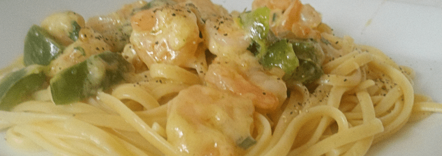 Cook & drain pasta. While your pasta is cooking, add oil and butter, garlic & green onions to skillet over medium heat. Saute for about 2 minutes (you don’t want your garlic to burn). Add mushrooms, shrimp, Old Bay seasoning and salt and pepper to taste. Continue cooking until shrimp turns pink (or you can use already cooked shrimp and just mix in with sauce until heated). Serve over warm pasta and top with parmesan cheese.