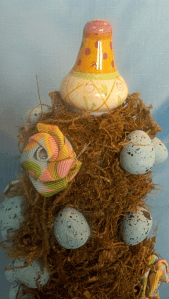 What tree doesn’t have a beautiful topper?? A ceramic finial was used to decorate the top of my topiary. And there she is! I love it!