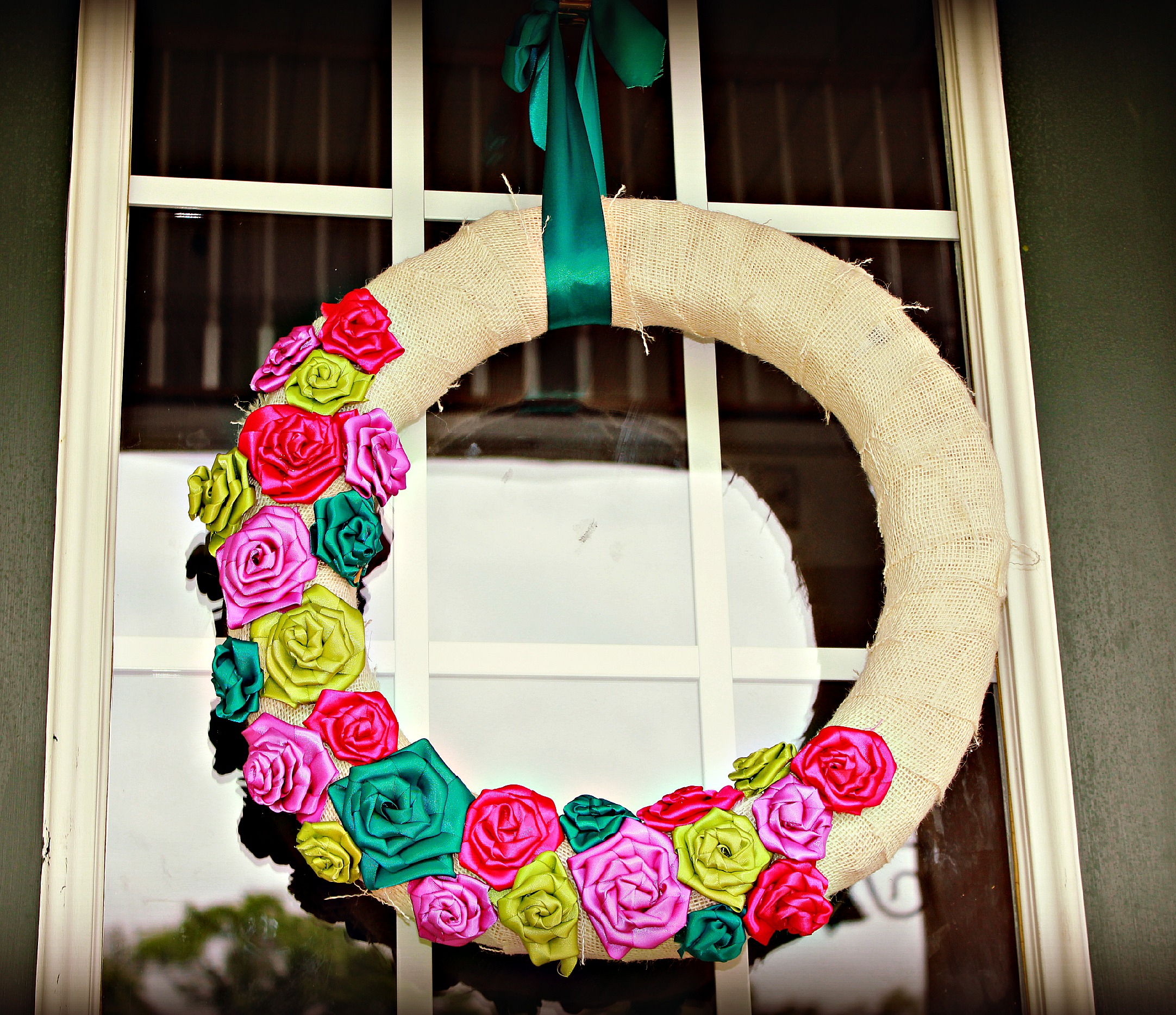 5 thoughts on “Burlap Wreath with Ribbon Rosettes”