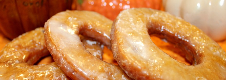 Nothing says fall to me like pumpkins! I love everything about them… carving, decorating, pumpkin scented candles… and I especially love the pumpkin flavored foods during fall time! When tweenie was a little boy we used to go to this one pumpkin farm that always made home made pumpkin donuts and fresh apple cider. You could watch them fry the donuts fresh and set them out with the glaze still dripping and the donut deliciously warm. So when I saw this recipe for Glazed Pumpkin Donuts here at Barefoot and Baking, I knew I had to try them!