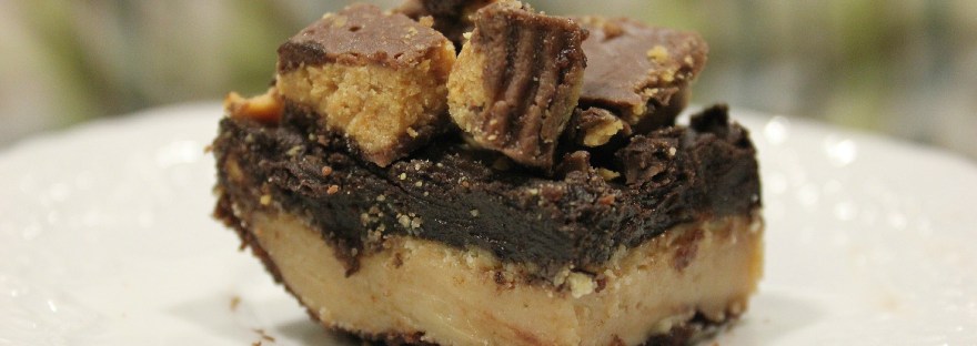 Chocolate and Peanut Butter or Chocolate and Cheesecake… I am not sure which is my favorite combination of chocolate BUT the great thing about this brownie recipe is that you don’t have to choose…it has it all! I was inspired to make this goodie when some friends came over for a get together and brought us a big huge bag of Reese’s Peanut Butter Cups. I set some out on the table and stashed the rest away for later in hopes to bake a yummy sinful treat… and this is what came of it…